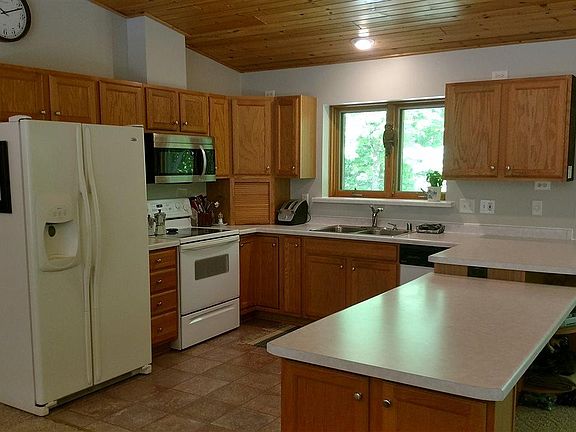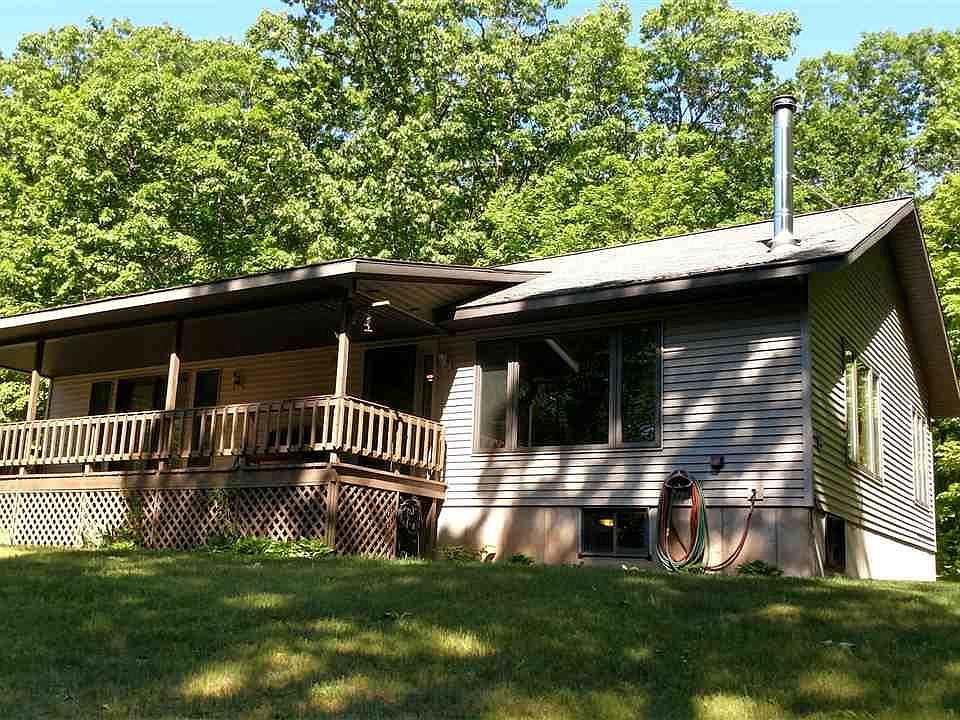 Very private setting close to Bayfield, you'll find the peace and quiet you treasure at this well-maintained home. Great Room has a wood vaulted ceiling with a beautiful real stone fireplace focal point. The energy-efficient Topaz fireplace insert can heat the entire home. Large windows all around bring in the forest scenes and fresh breezes. The spacious master bedroom has a sliding door to the covered deck. Convenient main floor laundry and plus a full bath. Lower level (partly finished) has family room (w/ unofficial bdrm), 3/4-bath & a dry basement. 2-car detached garage has a heated workshop. Pole barn has a concrete floor, insulated and heated center portion and 2 uninsulated wings, and 220V power for your hobbies or small business. Enjoy a hike to town on the Big Ravine Trails nearby. If you'd like a secluded setting in the Orchard region, just a few minutes from Bayfield & Lake Superior, this may be the one!