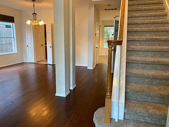 Open & Bright 2-Story home in a much sought after Woods of Brushy Creek and highly acclaimed Round Rock ISD! 4 BR, 2.5BA, 2-Car garage. Open Kitchen, center island, SS appliances (includes refrigerator) & bay windows in breakfast area. 2 Living areas and gas fire place. Wood floors & tile on 1st Floor. Huge covered patio & shaded trees in backyard with Sprinkler Systems to entertain friends & family. All 4 bedrooms are upstairs with large main suite offers relaxing garden tub/separate shower, double vanity & walk-in closet. Easy access to toll roads, nearby community pool, shopping centers, and walking/hiking trails, and major employers! Owner pays for property tax and HOA dues. Tenants pays all utilities and lawn maintenance. Small pet allowed with one time pet deposit of $250 and One time pet fee of $250. No sublease, No AirB&B, No smoking allowed, No criminal background, no past eviction(s). Must have 650 credit score or higher.