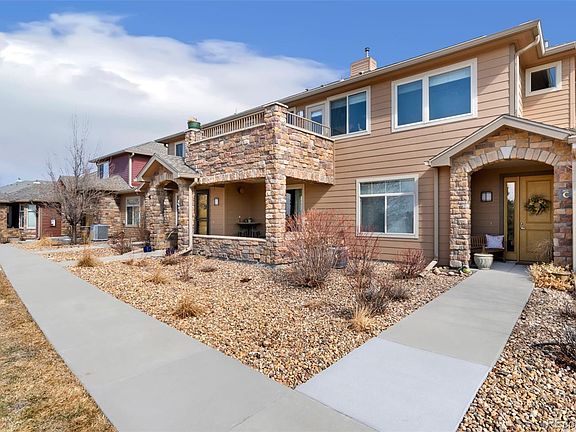 Huge Price Reduction! Now $565,000. Luxury Penthouse with Arguably the Best Views in Highlands Ranch. Mountain & Golf Course Views! This is your opportunity to own a true gem in Palomino Park, offering resort-style amenities and elegant penthouse living with sweeping mountain and golf course views. The tiled foyer provides garage access and convenient under-stair storage as you enter. Upstairs, the chef's kitchen impresses with slab granite countertops featuring demi-bullnose edging, a breakfast bar, 42" cabinets with pewter pulls, a drop-in colored sink, black stainless steel appliances, and custom lighting. A spacious pantry and ample cabinetry enhance both style and functionality. The formal dining room is perfect for entertaining. The living area showcases a built-in entertainment center, cozy fireplace, soaring 15-foot vaulted ceilings, a new ceiling fan with lighting, custom window coverings, and abundant natural light. Professionally cleaned carpeting extends throughout the main living areas, while the guest bedroom and den feature updated windows and vaulted ceilings. Both bathrooms are beautifully updated with tile flooring, modern fixtures, and elegant lighting. The guest bath features a soaking tub/shower combination, a vessel sink, and curved glass shower doors. Step outside to enjoy two private patios—ideal for morning coffee, sunset views, or evening relaxation. Resort-Style Amenities & Maintenance-Free Living The HOA covers snow removal, roof maintenance, exterior painting, landscaping, and other common area maintenance. Palomino Park's unmatched amenities include a state-of-the-art fitness club, indoor basketball court, tennis and pickleball courts, multiple pools and hot tubs, locker rooms, racquetball court, high-impact training room, horseshoe pits, volleyball and baseball areas, a children's play space, putting green, and a frisbee golf course. A bar and grill will reopen in 2025! Please explore our virtual tours for more information.