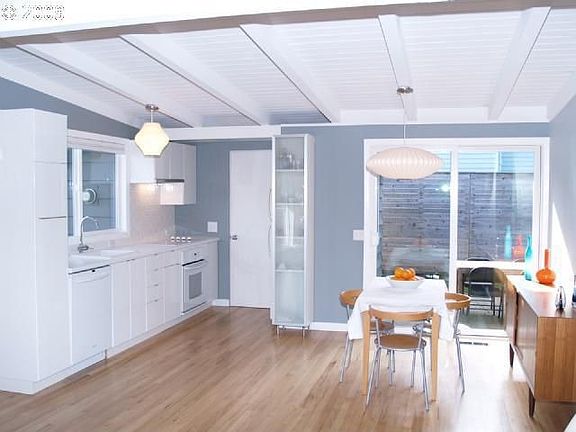 Very rare completely & tastefully renovated mid-century modern home with original intent intact.Renovations include: new roof, insulation, windows,bath,refinished hardwoods, sleek designer appliances, solar hot water...Open floor plan with exposed beams, dining area opens to private yard.Close proximity to Columbia Park, Little Red Bike Cafe...