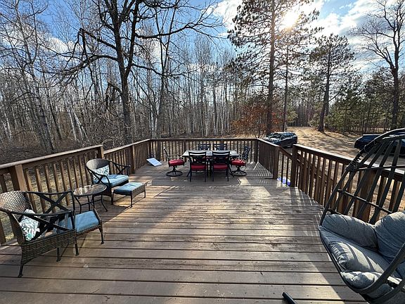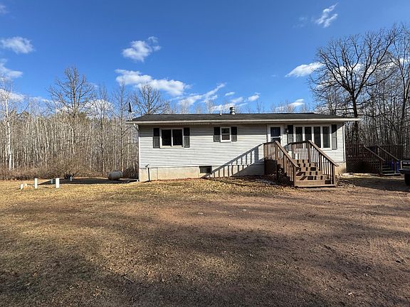 Location Location. Come take a look at this wooded 10+ acre parcel with trails all over it. Located just minutes from Sturgeon Lake is this 3 bedroom/2 bath rambler with walk out lower level. Main level has 2 bed, 2 full baths, laundry, eat-in kitchen, and living room. Lots of windows make this a bright and comfortable setting. Patio doors from the dining take you to the huge deck ready for BBQ and entertaining. Lower level has bedroom, extra room and rec room with french doors to the outside. Detached 24 x 24 garage along with storage shed. 10 acres offer great hunting and hiking on the many trails. Easy access to General Andrews State Forest and the Nemadji State Forest.