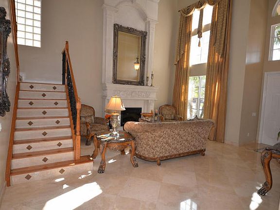 Stunning Jasper model with 5 bedrooms, 3.5 baths, 2-car garage. New chef's kitchen with Stainless steel appliances, wine cooler, upgraded 42'' cabinets with crown molding, under cabinet lighting, granite counters, tile backsplash, center island with snack bar, family dining area and high hat lighting. Master retreat boasts a coffered ceiling, sitting area, his and hers walk in closets, dual sinks, Jacuzzi tub, and a walk in shower. Bedrooms 4 and 5 share a Jack and Jill bath. Covered patio has new motorized retractable screen. Extended patio with a beautiful lake view. This home boasts marble flooring, designer marble medallions, crown molding, custom fire place, wood flooring and plantations shutters through out. Private yard with beautiful lake view. Over $140,000 in upgrades.