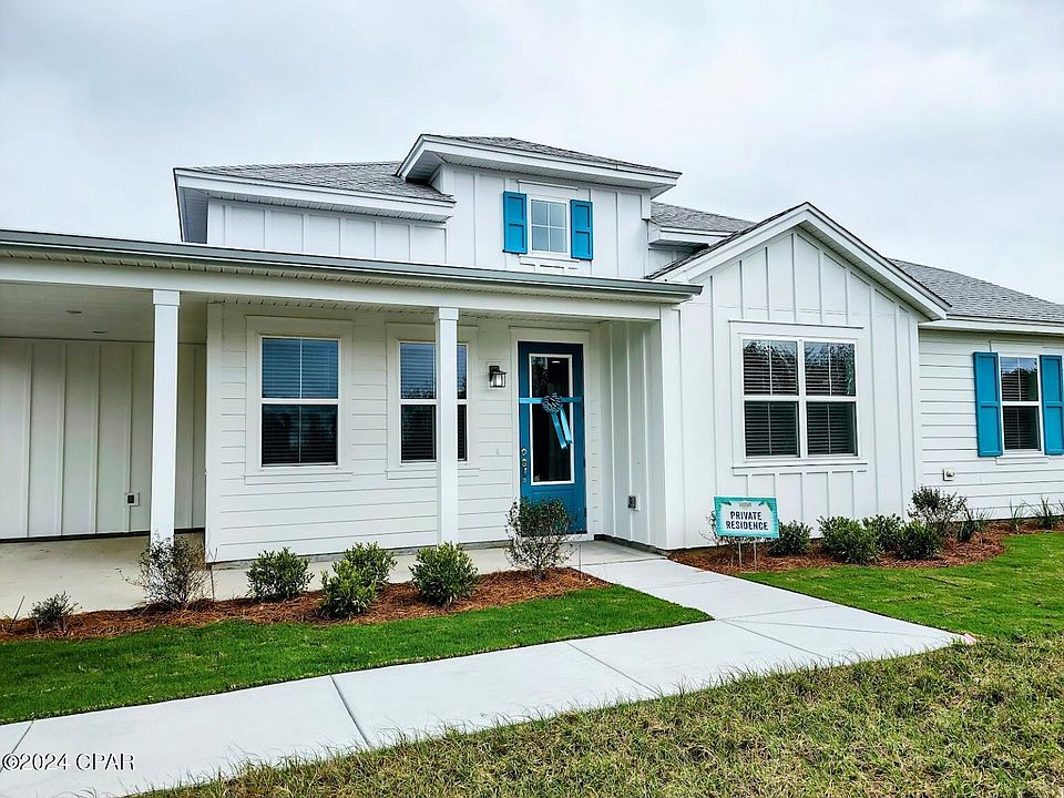 'CURRENTLY UNDER CONTRACT, SELLER WILL CONSIDER BACKUP OFFERS' ~ 55+ Community in Panama City Beach only 7 Miles from the White Sandy Beach. This ''Dreamsicle'' Cottage is located in one of the BEST LOCATIONS plus it is WATERFRONT! This is the 1st Cottage you see when you enter the Cottages on Conch Shell Court. This is a 2 BR + BONUS ROOM and 2 Baths. The Living Room, Dining Room, and Kitchen are all open and inviting. You can enjoy your morning coffee on the WRAP AROUND PORCH that overlooks the BEAUTIFUL POND and Enjoy many HAPPY HOURS at this perfect location. The Kitchen & Baths have Granite Counters, NO CARPET, Laminate & Tile. You will love all the Amenities... Bar & Chill Restaurant, Large Zero Entry Lagoon Style Pool, Tennis Courts, Pickleball Courts, Indoor Lap Pool, Indoor Hot Tub, Fitness Center, Dog Park, and they have started building the Theater and Workshop. The HOA dues cover the Roof, Landscaping, Mowing. Age, SF, and Dimensions are approximate... please verify if important.