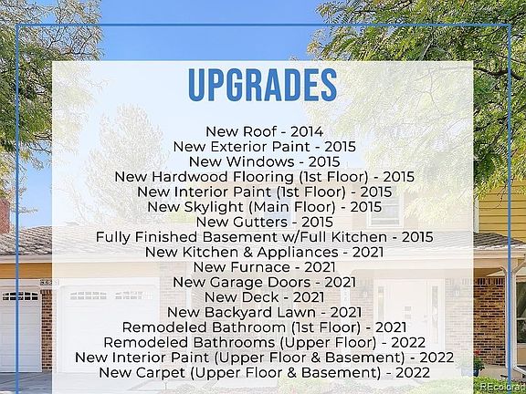 Back to Market! Past Inspection and Appraisal. Unfortunately at this time Buyer is unable to close. One Year Home Warranty provided with Purchase! Buy This Home & We’ll Buy Yours! This Awesome Remodeled Home is in the Highly Sought-After Willow Creek Community & the Very Desirable Cherry Creek School System and is being offered at below appraised value! Updates include: New Roof 2014,New Exterior Paint 2015,New Windows 2015,New HDWD Floors on Main Level 2015,New Interior Paint Main Level 2015,New Skylight Main Level 2015, New Gutters 2015,Finished Basement w/Full Kitchen 2015,Remodeled Kitchen & Appliances 2021,New Furnace 2021,New Garage Doors 2021,New Deck 2021,New Backyard Lawn 2021,Remodeled Bath Main Level 2021,Remodeled Baths Upper Level2022,New Interior Paint Upper Level & BSMT 2022, New Carpet upper Level & BSMT 2022. Plus a One Year Home Owner Warranty is Included! Walking Distance to Willow Creek Elementary. This Beautifully Remodeled Home that is Ready for you to Move Into & Start Enjoying Features 6 Bedrooms & 4 Bathrooms & over 3,800 Square Feet of Quality Living Area. The Main Level Features Newer Hardwood Floors, a Remodeled Gourmet Kitchen with Quartz Countertops & Stainless-Steel Appliances that Flows into a Very Cozy Family Room with Gas Fireplace that Walks Out Onto a new & Very Spacious Deck. Other Features are the Formal Dining Room that is Perfect for Celebrations & Living Room. The Upper-Level Features 3 Additional Bedrooms with a Remodeled Bath. The Owner’s Suite Features a Walk-In Closet & Newly Remodeled Bath with Walk-In Shower. The Walk-Out Basement is Amazing with a Full Kitchen, Family Room with Gas Fireplace, Casual Dining Area, 2 Bedrooms & Bath! The Outdoor Living Areas are Exceptional with a Large Newer Deck & Patio with beautiful New Landscaping that Overlooks the Willow Creek trail! Do Not Miss Seeing This Home! *cond.apply.