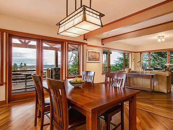 Custom built Craftsman bungalow. Authentically designed to celebrate the Arts & Crafts movement of the early 20th century, carefully hand crafted using only the finest quality materials. Oriented to capture the expansive views of bay & mountains, while nestled amidst gardens & a small orchard. Experience the natural flow of interior to exterior spaces. Wonderfully open & naturally light spaces, high tech wiring & systems, detached 3 car heated garage w/ unfinished studio. A true masterpiece!