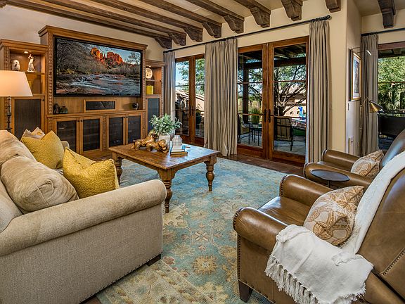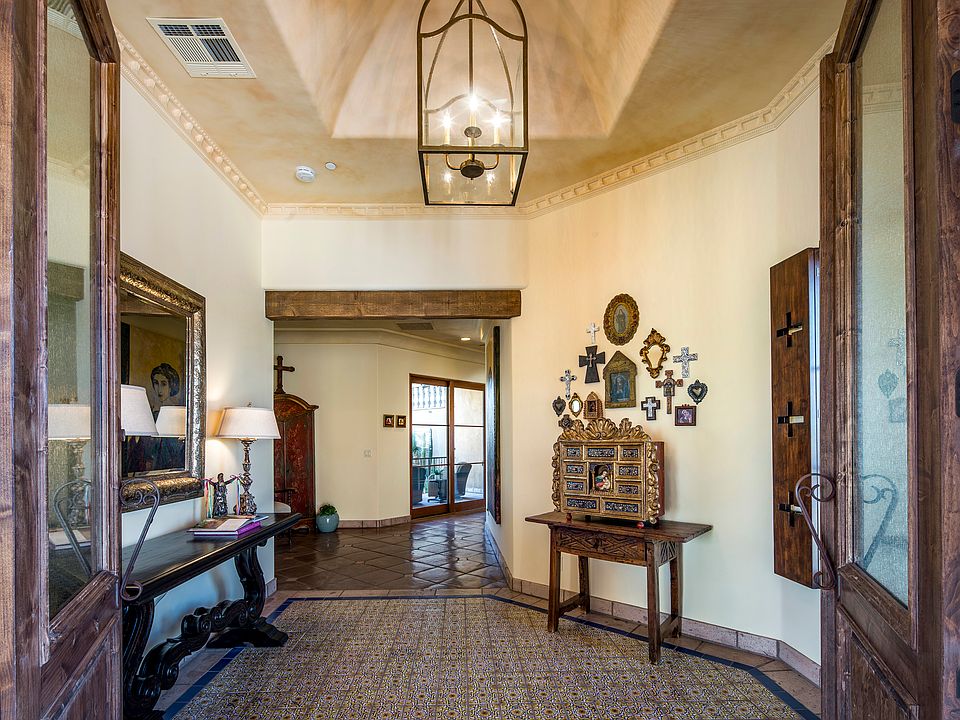 Hacienda style home on 3.6 acres. Privacy, views, outdoor living. 4 en-suite bedrooms, casita & coach house. Remodeled inside w/extensive landscape & hardscape upgrades, featured in Phoenix Home & Garden. Remodeled chef's kitchen w/dual Wolf oven, griddle, FD Sub Zero fridge, custom cabinetry, tile, wood & zinc counters & large walk-in pantry. Kitchen opens to family, dining & entertainment area w/full bar, wine storage, custom bookshelves, hidden speakeasy & fireplace. Master suite w/separate seating,custom built-ins & work/office space. His & her vanities, water closet, large shower & walk-in closet. Laundry room w/storage just down the hall. Exterior seating & dining areas under roof allow outdoor living all year. Rooftop deck w/valley views South & West, & mountain views North & East. Casa del Cielo at Whisper Rock is a masterfully designed Hacienda style home situated on a 3.6-acre lot, the highest in Whisper Rock Estates, providing unparalleled views of the valley and surrounding mountains. This home offers the ultimate in privacy, living space, views, and outdoor lifestyle. There is a completely separate guest casita, and a coach house over two of the four-car garages. This home has been meticulously remodeled inside and out, with extensive landscape and hardscape upgrades, which were featured in Phoenix Home and Garden magazine for its spectacular design. The fully remodeled chef's kitchen offers dual Wolf ovens with an oversized griddle, French door Sub-Zero refrigerator, handcrafted cabinetry, tile, wood and zinc countertops, and a large walk-in pantry. The kitchen opens to the family room, dining room, and a unique entertainment room complete with a full bar, wine storage, custom bookshelves, and a hidden speakeasy. The cozy seating area by the fireplace rounds out this dynamic space. All four bedrooms within the main house are en-suite, each with its own private balcony or patio access. The master suite features a spacious separate room for seating and/or tv viewing, that opens to the bedroom with custom built-ins and enough room to include a work or office space. The beautifully appointed bath includes his and her vanities and sinks, water closet, and large shower with stunning tile work, and a window that offers natural light and spectacular views of the valley, while still providing complete privacy. A large walk-in closet completes the master suite wing of this home. The laundry room with plentiful storage is located just down the hall from the bedrooms for added convenience. A separate casita offers sophisticated, yet comfortable guest accommodations, and its own outdoor seating for further enjoyment. The coach house located above two of the garages provides large living, and sleeping areas, as well as a dining or game area. There is an extensive number of outdoor entertaining, seating and dining areas under roof, allowing the outdoor living lifestyle to be enjoyed through all seasons. The rooftop viewing deck provides stunning views of the entire valley to the South and West, and mountain views to the North and East. This property is unmatched in Whisper Rock, and awaits your arrival.