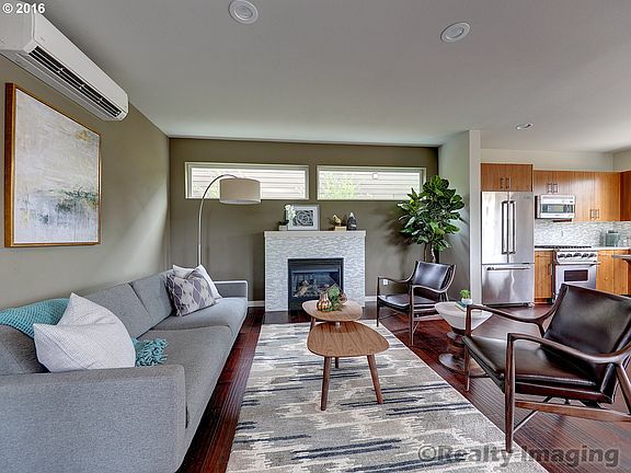 Earth Advantage EPS modern home with walnut cabinets throughout, slab quartz countertops, Viking appliances, energy efficient ductless split system AC/HEAT, gas fireplace. Large windows thoughtfully placed throughout to allow tons of natural light in year round! Up/down blinds! Finished garage has upgraded electrical and a private deck to easily finish for an ADU! Walk to Columbia Park swimming pool! Open house Sat 11-1 & Sun 12-2!