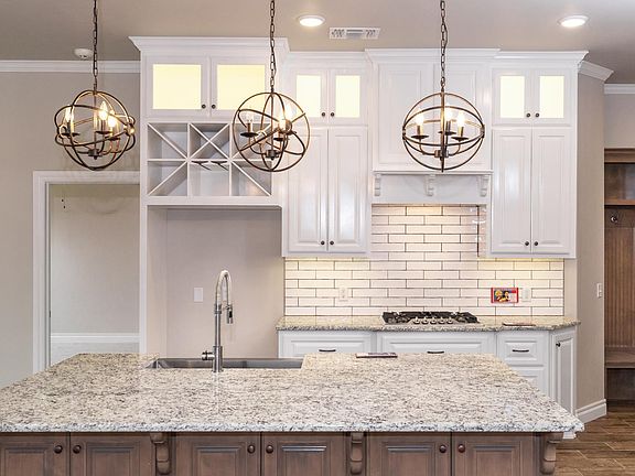 This Ponderosa floor plan includes 3,115 Sq Ft of total living space, which includes 2,800 Sq Ft of indoor living space and 315 Sq Ft of outdoor living space. There is also a 665 Sq Ft, three car garage with storm shelter. Home offers 4 bedrooms, a study, 3 full sized bathrooms, and a formal dining area. Property is wired with a security system. Has a fully sodded yard with landscaped flower beds, & an underground sprinkler system installed. Covered back patio with outdoor fireplace. Kitchen has built in stainless steel appliances, 3cm granite countertops, and custom cabinetry. Living room has gorgeous fireplace with stack stone surround, an open concept seating area, and 2 large windows to let in natural light. Master bedroom has a boxed ceiling, with crown molding. The master bath suite includes dual vanities, a relaxing whirlpool tub, spacious walk in shower, and walk in closet. Home has Rinnai Tankless water heater, whole home air purification system, R-44 insulation and Solarboards, insuring energy efficiency.