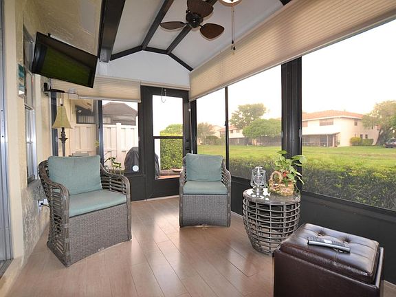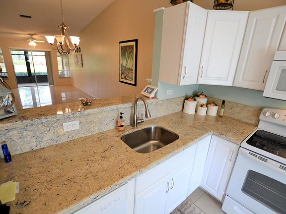 This immaculate Villa features 24 inch Porcelain tile THROUGHOUT, Newer kitchen with Granite counters, lazy susan and pantry. Less than 1 year old Air Conditioner and Washing machine. all new Panel doors on all closets, all updated light fixtures, Smart AC Thermostat, Double paddle fan on the quiet patio overlooking the canal. Automatic Hunter Douglas patio blinds. Too many upgrades to mention, truly turnkey and ready for the new buyer to kick back and relax. Pavered outdoor patio, Screened in patio and entryway. Must see to appreciate all the upgrades.Maintenance will go down to only 293/month starting in april.