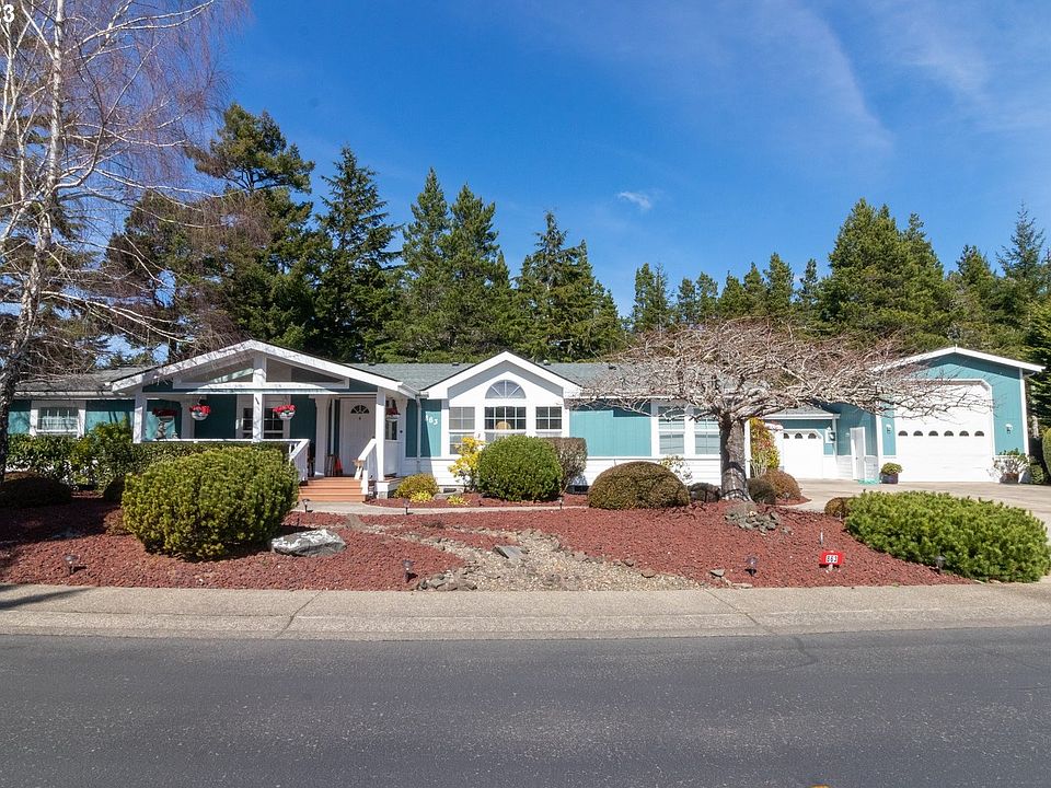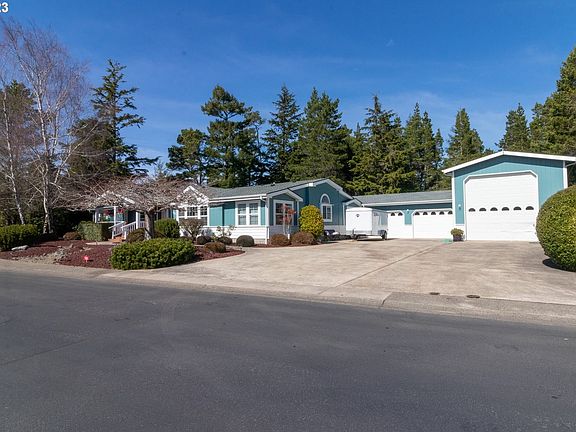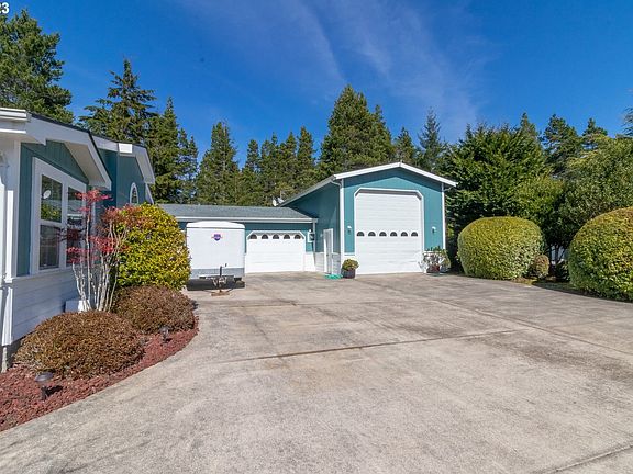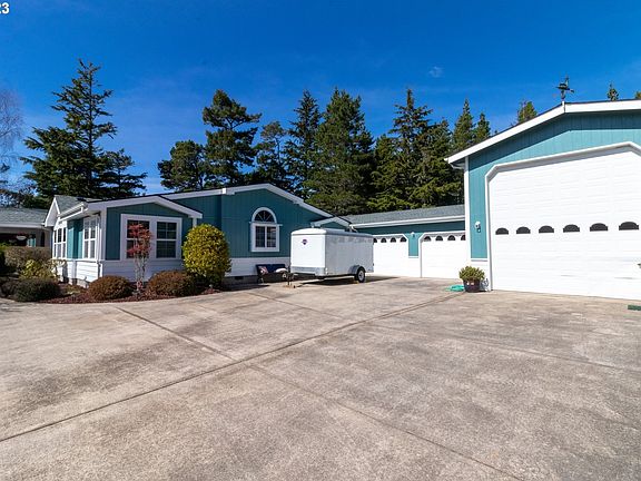 Moduline Custom beauty 2 bed plus den/2.5 bath MH home on.29 lot backs up to common area for backyard privacy. Finished 24x24 garage, plus 24 x 16 workshop plus 38x18 RV garage; 14' door; 30 amp inside; 2 dumpsites one each side of driveway. Roof approx 2 years old; tie-downs; heat pump; Guest bath walk in tub/shower. Door out of master to tiled bonus/hobby room (not inc in sq footage). Storage shed in backyard.