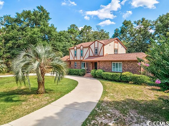 Great opportunity now available located in the highly sought after community, Litchfield Country Club. This all brick, 4BR/3B home sits directly on hole #5 of the golf course and is on nearly a third acre. This home boasts beautiful hardwood flooring throughout, an open updated kitchen with granite countertops, tile backsplash, EnergyStar appliances, a large Work Island/Breakfast Bar with pendant lighting and more. The Master Suite is located on the first floor and offers access to a large back deck. It is also equipped with a mini split AC system, large Carolina Room that leads to the updated Master Bath w/ double vanity and walk-in tile shower. All other bedrooms and bathrooms are upstairs and have been nicely updated as well. The original Master BR is upstairs and offers a fully updated bathroom and very modern closet sliding system. Notable exterior features include a large back deck, circular drive, several mature Oak trees, Solar panels on roof and a spacious garage with workshop and mini split AC system. There is also plenty of space on this lot for boat/RV parking or to build a private pool. Litchfield Country Club is well known for its location just a short drive to Litchfield restaurants and beautiful beaches. This home is a must see! Make an appointment today!