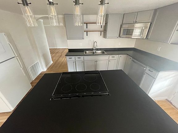 Come see this beautifully remodeled Lakewood duplex which have separate front and back yards and plenty of parking. This 1947 property is on a quiet stretch of Lakewood's Golf Club Acres neighborhood, just four blocks from the 6th Avenue / Sheridan Boulevard interchange. When driving, the property is 10 minutes from the Colorado Convention Center (downtown), 6 minutes from the Sloans Lake Alamo Drafthouse, 16 minutes from Red Rocks, 10 minutes from the University of Denver and 16 minutes from Shanahan's in the Tech Center (all confirmed via Google Maps). When walking, the property is 2 blocks from the 9 and 51 bus lines and 5 blocks from the Sheridan Light Rail Station. When riding bicycles, the property is 3 blocks from the super-central Lakewood Gulch Trail, an 18 minutes (3.9-mile) ride from the downtown REI (with 95% of the ride entirely on bike path). The property sits on a large .45-acre lot, and it's less than an hour (54 minutes!) to Loveland Ski Area. The neighborhood's schools: Elementary: Molholm. Middle: Jefferson. High: Jefferson. District: Jefferson County R-1. Next, a little about this house, which is the south unit of the duplex: You will love this 1,100 square-foot single-story bungalow with its original hardwood floors! 3 bedrooms, one bathroom - with hardwood floors and heating / air conditioning. Updated full bathroom (with original cast iron tub) with large, modern kitchen (w/ new countertops and island seating) and a laundry room with full-size washer and dryer (one of which is brand new). The house includes flexible and versatile living spaces, including a kitchen-adjacent dining nook and a spacious living room, which opens up to a secondary front porch. Primary bedroom has tall ceilings, lots of closet space and sliding glass doors that open up to a large, private backyard. House includes three off-street parking spaces and an outdoor shed for storage, and you'll love the two raised garden beds in the backyard. First Month's Rent and Security Deposit due at lease signing. No smoking allowed. Dogs allowed with $400 non-refundable pet deposit plus $50/mo per pet (max 2) $42 non-refundable application fee per adult. Applicants must be able to pass background, credit (620 minimum) and reference check. 12 to 18 month