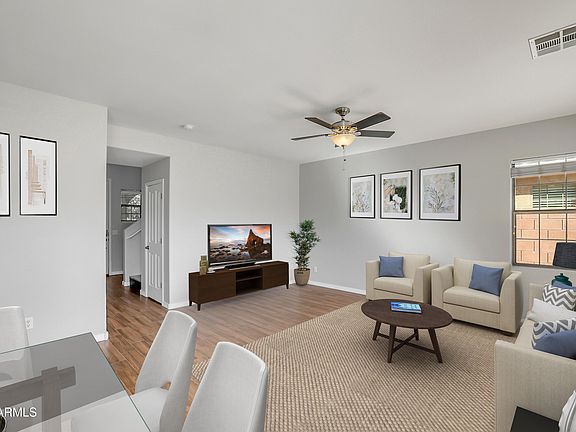 Fresh Interior Paint 2/20/25! Great Room w/ 3 Bedrooms plus loft, 2.5 baths, 2 Car garage located in gated community of Nicholas Point. Beautiful Kitchen update with granite, custom waterfall island and cabinets w/ self close, custom tile backsplash, newer dishwasher. Wood plank tile thru-out except bedrooms, custom tile staircase. Primary and guest bathrooms updated with granite counters, sinks and cabinet refresh. Spacious landscaped private backyard includes real grass, built in firepit, extended covered patio & garden planters. Conveniently located 10 minutes from downtown Chandler with fabulous dining, shopping, theatre & downtown Gilbert with fabulous dining, Shopping, entertainment, Mercy Medical hospital, medical offices, parks. So much more great location. Existing Refrigerator, Washer and Dryer convey with the home.