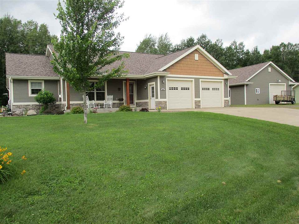 Move in ready, low maintenance 3 bedroom, 1.75 bath ranch home on +/-1.11 acres in the Eagle Ridge Subdivision. Custom kitchen with island and walk-in pantry. Living room with gas fireplace. Master suite with walk-in closet and master bath. Main floor laundry. Full poured concrete basement is studded, insulated and ready to finish into a large family room, bathroom and bedroom. Covered and uncovered rear patio areas overlook the private backyard. Covered front porch.Attached and detached heated garages. The kitchen stove, refrigerator, dishwasher, microwave, water softener, window coverings and hot tub are included in the sale price.