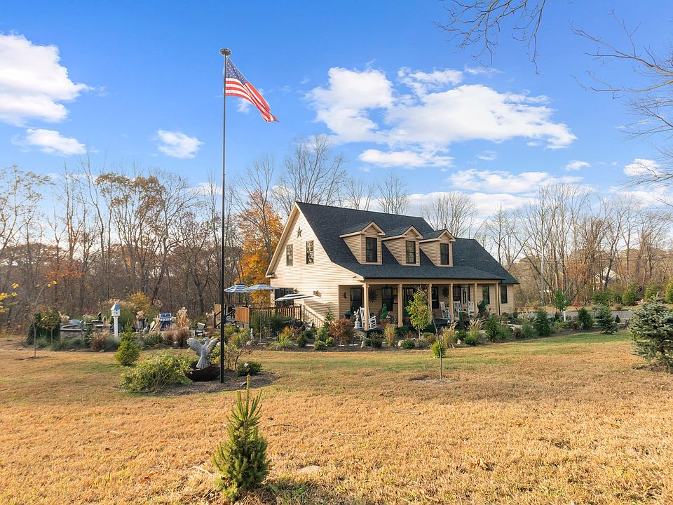 Spectacular countryside cape surrounded by stonewalls, mature plantings & trees. This farmhouse has been meticulously maintained and features custom high end appointments throughout. The main floor has 9' ceilings and 5" oak hardwood floors. A new accent wall with gas fire feature in the living room will captivate. The sun filled dining room opens to the chefs kitchen. Highlights include granite island, soft close cabinets, copper knobs, double ovens & gas cooktop w/ pot filler. There's even a copper farmers sink! A walk in pantry with built in bar, full bathroom and bedroom/private office round out the primary level. The upper floor features the primary sleeping quarters, two more bedrooms & a full and half bathroom w/laundry area. The available attic/bonus room above the garage can be finished for even more space. The majestic exterior grounds feature custom hardscape, fruit trees & professionally installed garden areas. Enjoy private cedar decks for dining al fresco or just to overlook pure nature. The full walkout basement offers additional dry storage or more living space if finished. This home offers a total of 3 garage bays, new generator and new water treatment system. There's plenty of parking on the new driveway too. For those seeking exceptional living, this is the one! Surrounding destinations include Pachaug State Forest Land across the street or minutes away from Beach Pond. Multiple airports, highways and restaurants/shopping are all within reach as well.