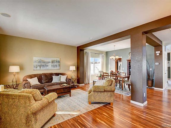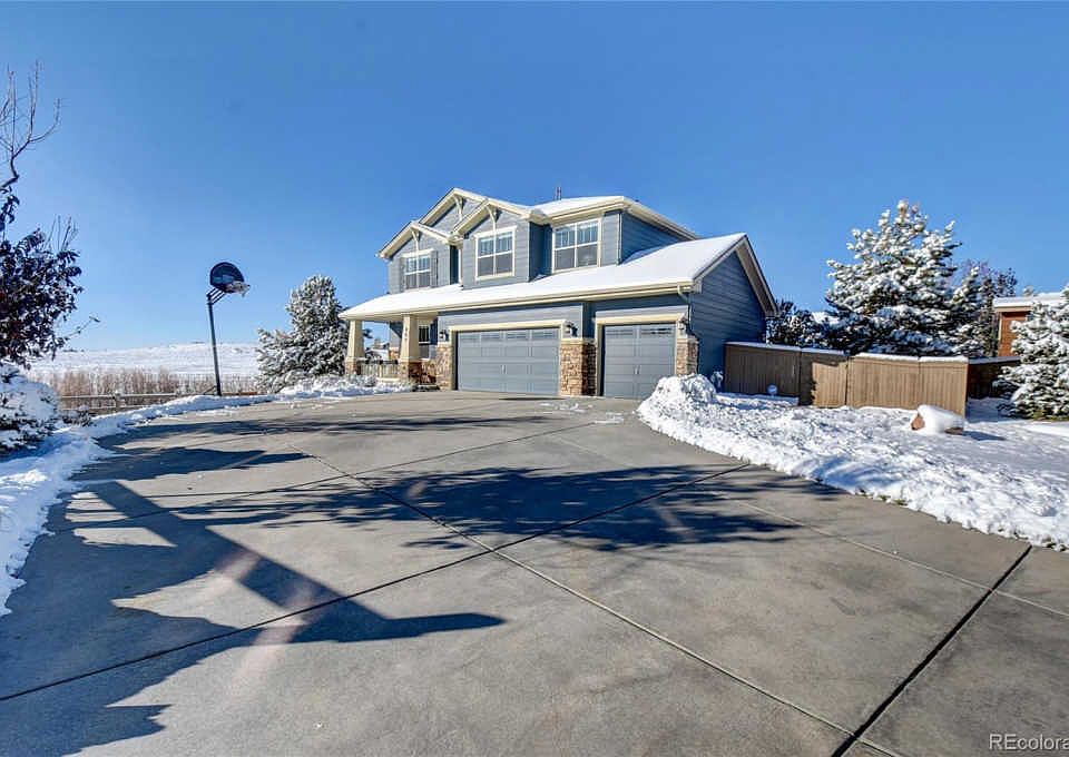 Stunning 2-story home, situated on a quiet cul-de-sac in Castlewood Ranch. The backyard borders large open space - as far as you can see! Beautiful hardwood floors throughout the entry, dining room and living room. Open floor plan with two-story family room. Kitchen boasts granite countertops, 42" cabinets, built-in desk, eat-in kitchen, stainless steel appliances and tile floor. Main level laundry area. Upstairs features a loft overlooking the family room. Master suite features a 5-piece bath and spacious walk-in closet. The professionally landscaped yard includes a variety of trees, river rock and more! Incredible back deck with hot tub and retractable awnings to enjoy the peace and quiet while overlooking the vast open space! The basement is unfinished - oh the possibilities! Smart home wiring for light switches and sound system throughout the home. Roof is only a year old with transferable warranty. This beautifully maintained and private home is a must see!