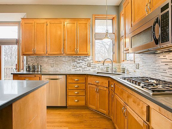 Beautiful well-kept home on private lot, meticulously maintained with recently updated kitchen including Bosch and Thermador stainless steel appliances, quartz countertops, and refinished hardwood floorsNew 98% efficient HVAC with touchscreen thermostat and integrated Wifi. Other great features include maple cabinets, custom built inns, extensive landscaping, speakers throughout, planation shutters, in-ground sprinkler system, and freshly painted main and upper levels, finished walkout basement., Directions 694 TO 10TH ST N - E TO HERON AVE N