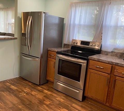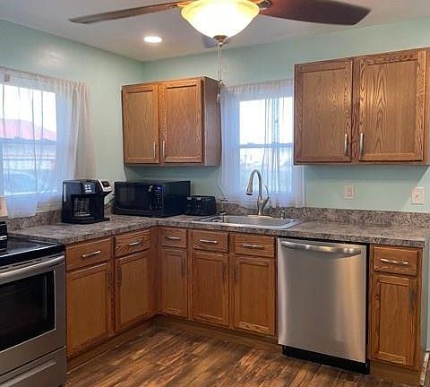 Cute as a button home on quiet street. This home has ALL new wiring. Totally remodeled except bath and laundry room. All appliances are 1 year old including water heater. Huge fenced back yard and deck for enjoying or entertaining. Large bedroom closets and attached 1 car garage.