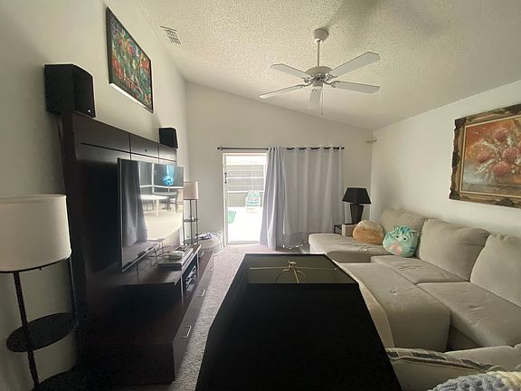 Very nice, well-kept 3/2 pool home with privacy fence in Hampton Lakes, off Hwy 27 in Davenport. The kitchen view is open to the family room, with room for bar stools and has an adjacent kitchenette. The bedrooms are spacious and the Master bath includes a garden tub. The pool deck has enough room for cooking out and lounging with family and guests. The home has a two-car garage, full washer and dryer and comes unfurnished. Lawn care and pool care are included in the rent. 12-month lease with option to renew. Renter responsible for electricity, water and cable/internet services. Pets ok with pet security deposit for each pet. Lawn and Pool care Included in the rent.