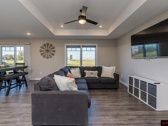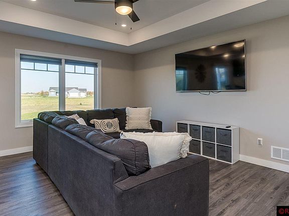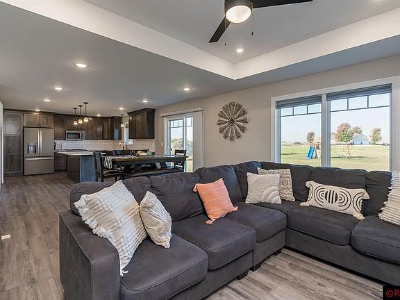 Nestled just outside of Madelia in the River View Heights subdivision sits this 2021 Design Home Center built home on just under a half-acre lot. This modern farmhouse build is both functional and fresh! It begins at the curb, with maintenance-free exterior and stone accents that greet you as you ascend towards the entry. Comprised of five bedrooms and three baths, this home is spacious and very inviting. In the primary bedroom, you'll find a pan ceiling, a walk-in closet, and a private en-suite. The laundry/mudroom is right off the three-car garage and kitchen for added convenience. The open-concept main floor offers a spacious kitchen with stainless appliances, a large center island, and ample cabinet space. The lower level boasts a large family/theater room and two additional bedrooms. Pan ceilings in the master and great room, Cambria island top, cultured marble vanity tops, and Onyx shower panels are just a few of the many upgraded finishes this home has to offer.