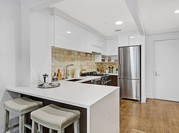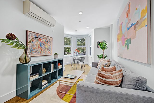 Built in 2017, 863 Saint Mark's is a gorgeous limestone conversion on a beautiful, leafy block directly opposite Brower Park! This gorgeous 1 bedroom condo unit is flooded with light from the large picture windows. The kitchen has stainless steel appliances and the bathroom is generously proportioned with lovely marble finishes. This south facing home is equipped with central air conditioning, washer/dryer, a large coat closet, and access to the private common roof terrace up the speedy new elevator! A large private storage unit is included with the apartment! The building is conveniently located near the 2,3, A and C train lines and directly across from the incredible Brooklyn Children's Museum. Crown Heights is a beautiful, diverse neighborhood, and this building offers modern luxury integrated seamlessly into this historic block.