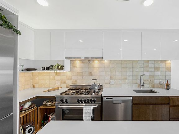 Experience the feel of living in a private home in this stunning 3-bedroom duplex perched on the top two floors of a boutique condominium. Your private oasis awaits on your expansive roof terrace just outside of the large master suite. Overlooking Brower Park, the terrace is the perfect location for entertaining or enjoying a quiet evening at home. The three bedrooms and two full bathrooms are located on the top floor, which is accessible through a private elevator that opens directly into the unit. The serene bathrooms are generously proportioned with lovely marble finishes. The lower level features a seamlessly integrated open kitchen, living, and dining space along with a half bathroom. The kitchen is outfitted with a Bertazzoni range and hood and stainless steel appliances from Bosch and Blomberg. Abundant light floods through the expansive windows throughout the space. Individually controlled Daikin heating and cooling in each room, a full-sized washer and dryer, hardwood floors, and ample closet space round out the features of this unit. This 10-unit boutique condominium is only four years old and offers a common roof deck where you can watch breathtaking sunsets and views of Brooklyn and Manhattan. It has a common room with bike storage and exercise equipment, private storage (monthly fee based on availability), and a super that lives next door. Situated on a beautiful, tree-lined block, directly opposite Brower Park which features the Brooklyn Children’s Museum with its own public library, basketball courts, a skate park, a butterfly garden, picnic and performance areas. Conveniently located near the 2, 3, A, and C trains and easy commute to many of Brooklyn’s gems such as the Brooklyn Museum and Brooklyn Botanic Garden. No board approval required, pet and investor friendly.