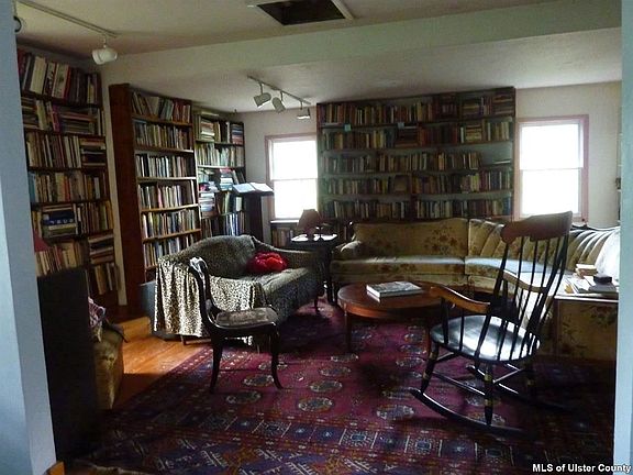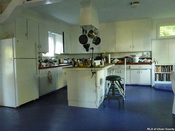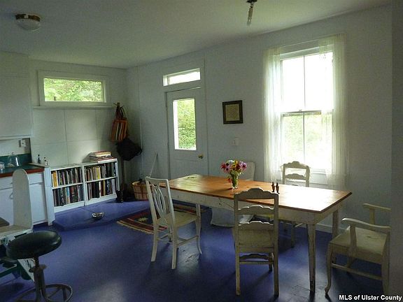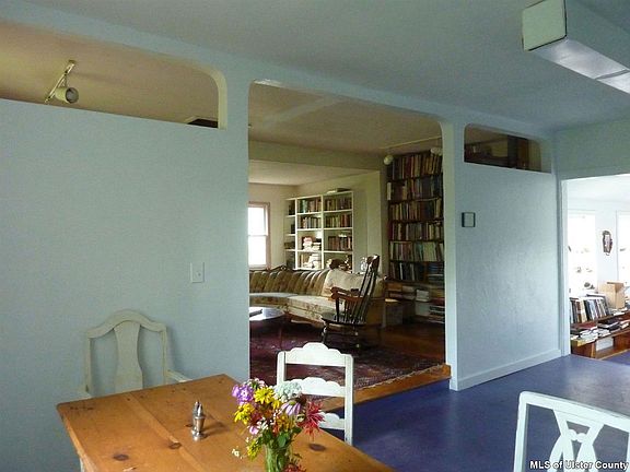Old 2 room school house attached by breezeway to a former firehouse. The schoolhouse was sold to Kerhonkson Fire Company who built the firehouse for two large trucks with 3 bedrooms( one bedroom has two rooms) and baths above. Old schoolhouse is now the kitchen and living room. Heated breezeway with half bath goes over to a large studio( 1250 SQFT+/- ) now in the 2 firetruck bays with FA heat and pellet stove. Hallway with washer and dryer leads to upstairs bedrooms with fire escape to back yard. Most of land is hillside. Short driveway to plow. A MUST see if you need studio space or LARGE(1250 SQFT) heated storage space with your home. Elc outlets every 5 feet in studio space. Taxes and assessment are based on a 5 acre parcel. Sale on 3 acres is subject to subdivision approval.