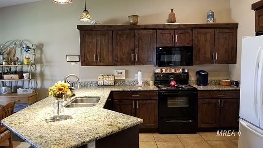 This 2 bedroom plus Den town home is just the ticket for either your full time residence or your snow bird get away. Kitchen comes with Granite countertops, handles on the cabinets, custom drop lighting over the countertop high bar and the walk in pantry is the best! The bedrooms are roomy and the master bedroom has a walk in closet. The master shower has seats and upgraded lighting. The den is off the living room and has double doors. Fully fenced and landscaped backyard with covered patio makes a great way to enjoy the summer evenings. The 2 car garage is great for extra storage and your cars.