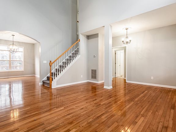Details done: fresh paint and brand new carpet make this home a blank slate! Gleaming hardwoods greet in the foyer of this spacious home opening up to a grand 2 story fireside family room. Through an arched doorway, an elegant dining rm sits adjacent the sunny eat-in kitchen with stainless steel appliances, tile backsplash. Guest bed with ensuite on main while upstairs, large, private master with tray ceiling, walk-in closet, double vanity, & soaking tub. 2 more beds share a full bath & daylight basement for storage & easy expansion. Large back deck overlooks private yard!