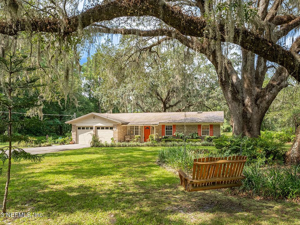 NOTE; this sale includes the house and 1.2 acres of land, the Western acre is being sold separately; see attached survey. Wonderful opportunity to buy in OLD FRUIT COVE, this great all brick rancher has all kinds of options with NO restrictions! The original owner has lovingly maintained this home through the years, especially the lush landscaping and century old oak trees. Lovely 16x24 tiled screened in patio in back with cathedral ceiling. There's also another one car garage/workshop & carport out back with power and water run to it. Newer SS oven & refrigerator, roof approx. 10 yrs old, septic has been replaced and maintained, electric has been updated, this will not last!