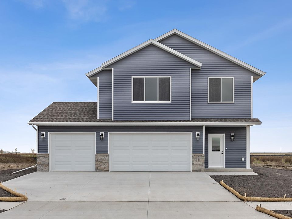 Upgraded "Sarah" 3-level on 300+' deep lot backing to water feature in Cub Creek 2nd Addition! Light and bright with tons of windows, curved kitchen island, fireplace and 12' ceilings in the main entertaining space. Two bedrooms up includes owner's suite that has private bath with double sinks, tiled shower, soaking tub and walk-in closet. Additional bedroom, full bath and laundry room up! Lower level entertaining family room, 2 additional bedrooms, bath PLUS 4th level finished for flex space! Insulated 3 stall garage is heated with floor drain. Includes deck!