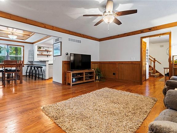 Welcome to this beautifully maintained 2-story home in Lenexa with a new roof (2024)! The main level showcases stunning hardwood floors and a warm, inviting Great Room complete with a brick fireplace, built-ins and an extended mantle-perfect for decorating. Updated kitchen is a chef’s delight, featuring an eat-in island, granite countertops, peninsula seating, pantry with pull-out drawers and stainless steel appliances—all staying with the home. Step outside to a spacious 2-tiered deck overlooking the privacy-fenced backyard, ideal for entertaining or quiet evenings. A formal dining room adds even more space for gatherings. Upstairs, unwind in the primary suite with en-suite bath, while three additional bedrooms, a full hall bath, and convenient bedroom-level laundry offer comfort and ease. The finished basement extends your living space with a large rec room, half bath, and built-in storage. All of this in a prime location—just a short distance to Sar-Ko-Par Trails Park and the brand-new Sar-Ko-Par Aquatic Center, plus minutes from Lenexa City Center’s shopping, dining, and quick highway access. Don’t miss this one—welcome home!