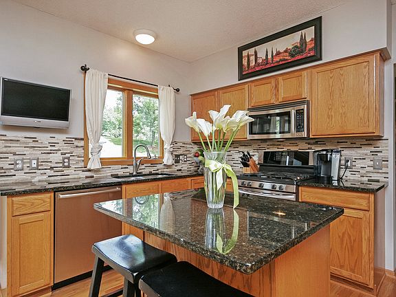 Charming 2-story home with 4 bedrooms on one level in The Pointe. Main floor welcomes you with hardwood floors and a gorgeous kitchen with stainless appliances, granite countertops and center island. Master suite features a private bath with soaker tub, granite countertop, and walk-in closet with built in organizers. Outside you'll find freshened landscaping and a private, flat backyard with stamped concrete patio and large deck. Don't miss this one!