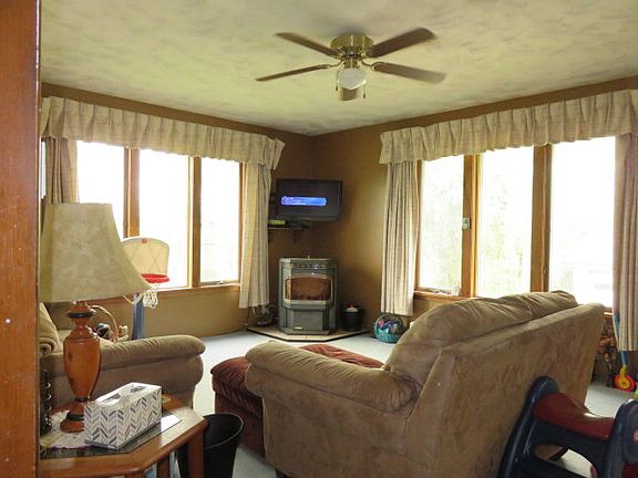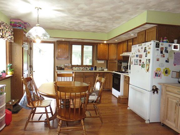 Wonderful Country Setting! Raised ranch home w/ oversized two car garage and 10+ acres to roam. About 7 acres wooded for hunting, 4-wheeler/hiking,etc. Home provides walk in lower level with large family room, laundry/bathroom, 3 extra rooms to use as office/den, play rooms, work shop; your choice. 2nd (Main) floor - enter from 1st floor or exterior entrance has open concept with oak kitchen, dining area, and large living room combo. In addition, there are 3 bedrooms & full bath. Additional full bathroom was planned but currently used as a nursery. 2 pellet stoves & wood stove stay.