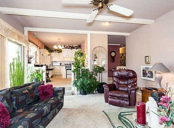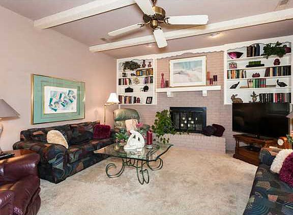 This home shows the care and life time maintenance of a one-owner home. Sitting on a beautiful corner lot, this home boasts a fantastic living room with a brick fireplace and beamed ceilings, easy flow applianced kitchen with eating bar, eating space and window over the sink, unusually larger master suite with his/her closets & private master bath with sunken hot tub, 2 sinks, separate shower & a skylight set in the vaulted ceiling. The main floor is also accented by an additional bedroom, full bath & laundry room. The basement holds additional living space for your family or guests with a sizable rec room and a large bedroom (no egress) with a huge walk-in closet and private full bath. Enjoy the outdoors from the concrete patio that runs along the back of the house and the wood fenced green lawn maintained by a sprinkler system. Close to area shopping and dining; this house is not one to miss!