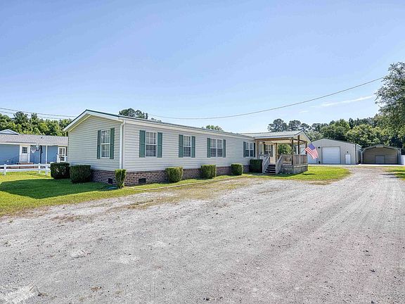 Welcome to your dream home! This unique three-bedroom, two-bath home sits on a generous three-quarters of an acre with dimensions of 90 x 353. This property offers ample space, privacy and NO HOA. Additional features include a 2,000 square foot insulated, heated/cooled detached garage with a half bath, utility sink and 200 sq ft loft in a spacious 40 by 50 footprint with 12 foot doors. Great for car enthusiasts, RV’s, Boats or storage. Also, for extra storage is a 10 by 22 shed and a 22 by 42 carport perfect for multiple vehicles or outdoor gatherings. The property is equipped with security cameras for added peace of mind. This property is situated in the perfect location just 15 minutes to the beach, shopping, airport and easy highway access to North Myrtle or Conway, this home combines tranquility and convenience. Don’t miss the opportunity to make this stunning property your own! This type of property does not come along often. Call Today!