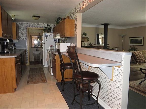 Home features huge family room addition with cathedral ceiling with separate furnace and a/c. Eat-in kitchen with breakfast bar opens to living room. Private master bedroom area with full bath. Second full bath with new Jacuzzi tub. Nice hardwood in two of the bedrooms. City water and natural gas. Newer roof ('03), windows (2000). Separate drive leads to attached garage with loads of storage as well as second outbuilding.