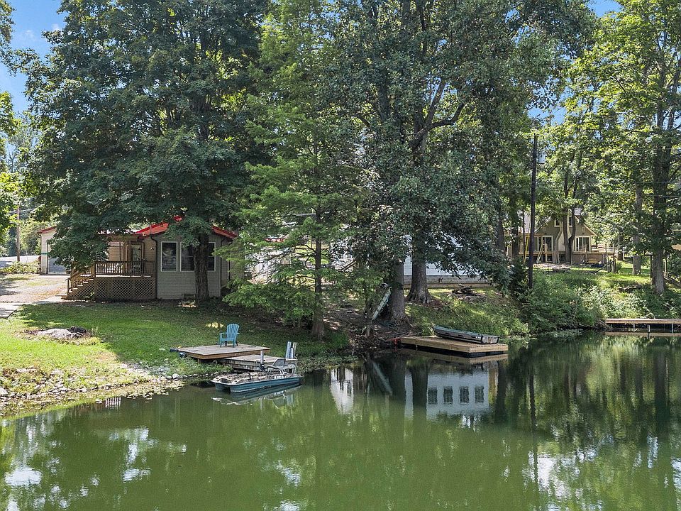 Life is better on the lake! That is especially true in this charming 3 bed, 2 full-bath home with massive closet space, a newer metal roof, newer dock, fenced back yard and cavernous two-car garage. Greet the neighbors from the expansive front porch, gaze upon the beautiful view from the newer sunroom, or spend the day fishing in the deep, well-stocked lake from your own dock. When the weather turns, just cozy up in the spacious living room or host holiday meals in the charming dining room. Bedrooms 2 and 3 have baseboard heat and window a/c units. This character-filled home is a paradise for nature lovers. Come enjoy the spectacular views today!