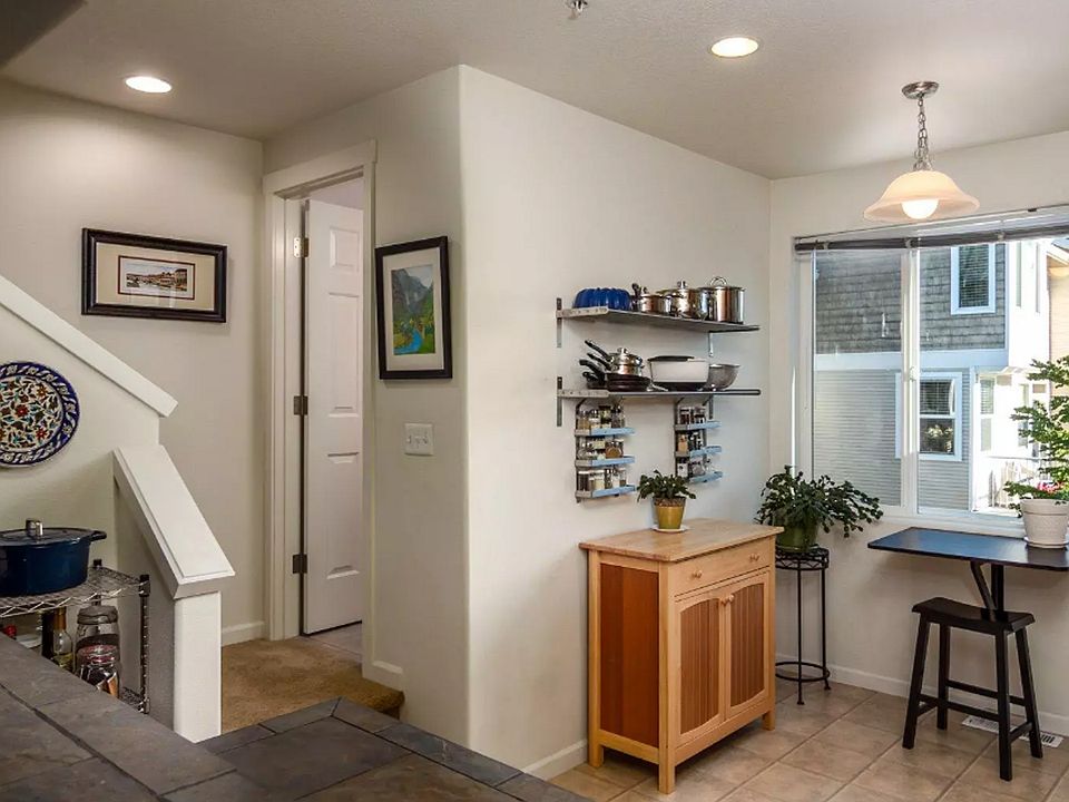 Nice dining areaWine rackCustom tileGas rangeAir conditioningRoom for small bbqCustom maple cabinets