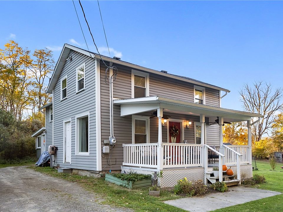 Nestled just off Main Street in the heart of Naples, this charming home offers the perfect balance of privacy and convenience. With over an acre of private land, it’s surrounded by the beauty of the Finger Lakes and located just minutes from local breweries, wineries, and a nearby ski resort, making it a true four-season destination. The spacious covered porch invites you to relax & take in the stunning fall foliage- a cozy outdoor retreat for any season. Inside, the open-concept living room features hardwood floors throughout the main level and a versatile space for a home office or play area. Huge kitchen with an oversized island/breakfast bar, as well as enough room for a table, making hosting a breeze. A 1st floor full bathroom and laundry add convenience, while the enclosed porch provides a perfect drop zone or additional storage. Upstairs, you’ll find 3-4 bedrooms and a charming area perfect for a desk or a cozy chair for reading, offering even more flexible space. A great backyard with walking trails that lead to a flat area, perfect for bonfires or outdoor activities. A partially fenced yard adds privacy and creates a great space for pets or play.
