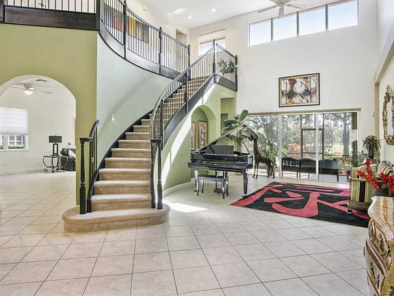 THIS IS THE HOME you have been looking for! A remarkable Kolter homes Marion model with 3,329 SF AC 3BR- 3.5BA plus office/den, all located in the desirable Thompson Point area of the prestigious PGA Village with manicured lawns and plenty of greenery. You will golf your best at PGA Golf Club home of 3 semiprivate courses or a separate the fully private Legacy Golf and Tennis Club. There are memberships available at both clubs, but they are not mandatory memberships. You will enter the home's foyer and walk into an elegant living room with a 28' tall ceiling, and beautifully curved staircase with wrought iron pickets & wood decorative handrail and glass slider doors to screened porch capturing a breathtaking vista of lush yard landscaping, a golf course with a lake view. (see supplement)