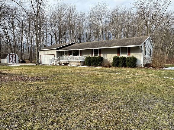LOCATION, SIZE, AND ACREAGE!! Experience the ultimate in country living with this charming home and property, where serenity and accessibility blend seamlessly. This large ranch-style home features a bright & spacious living room with wood-burning fireplace, dining room with sliding glass doors leading to a small deck, a galley-style kitchen with plenty of cabinet and counter space, first-level laundry/mud room off the kitchen with awning covered entrance from south side of home, three generously sized bedrooms with ample closet space, and a bonus room which could potentially be a fourth bedroom, full bath with two sinks, and a half bath on the main floor. The full basement boasts a wood-burning stove and walkout, while a two-car attached garage and shed provide convenience and storage. Ideally located in Saybrook Township & nestled on a beautifully wooded lot totaling 1.94 acres- this home is mere minutes from Route 90, dining, shopping, golfing, wineries, Lake Erie, and more, offering a unique blend of country living and city life amenities. Sold as is, this home is waiting for you to add your personal touch, don't miss your chance to make it yours!