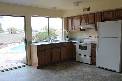 For more information on this property, contact the Listing Agent, Cara Mancuso at (520) 909-2988 or Cara@swdeserthomes.com. Come visit this well-loved Ranch home in a prime location. Four bedrooms, two bathrooms, with country kitchen and newer corian counters and cabinets. New carpeting. Newer Rheem gas furnace. Comes with all the appliances in home. Enjoy the large, gas-heated diving pool beneath a gorgeous mountain backdrop. This home has been freshly painted and cleaned inside and out! Ready to move in! Roof recently coated with Elastomeric coating. Moments from Lakeside Park, Lincoln Park, and Fred Enke Golf Course!
