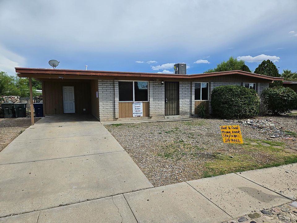 FILLED - Rent to Own Your Forever Home. Minor Fixer! E-Z Qual! No Banks! Eastside home, address: 8632 E Mormon Dr, 85730. 3 bedroom 2 bath, 1533 sqft home. Interior has been freshly painted. New stove, microwave and dishwasher will be provided at move in. Covered patio. Fenced backyard. Minor fixer - some rooms need flooring. The carpets have been removed. You get to choose what flooring you want and make it your own! $1795 mo. $4,900 down plus first month to move in. If you are ready to own your own home, can afford the monthly payment, have the ($4,900) down payment and first month, take a drive by the home and look around to be sure it's a good fit for you. Applications are located at the home. Small business owners welcome! No application fee. For more info call 219-4442 Rent to Own home! Not a regular rental.