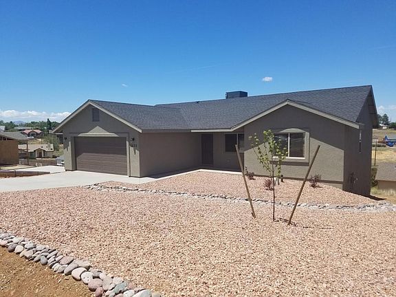 New construction, nicely finished 1290sf 3 bed (split), 2 full bath open floor plan with attached 2 car garage and front yard landscaping. Kitchen boasts white cabinetry, granite counter tops and eat in dining area with some fantastic views of Mingus Mtn and to the north. Enjoy those same views from the deck that is right off the kitchen/dining area with stairs leading to the back yard. There is also unfinished space under the home for extra storage. Come take a look at all you get in this wonderfully priced home.