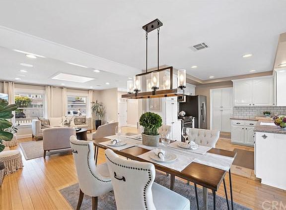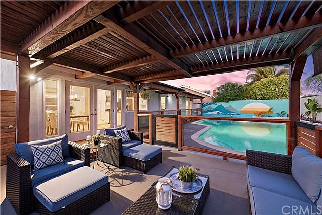 Single-Level Beach House in the heart of Huntington Beach! This turn-key dream home is just steps from the beach and Pacific City. From the moment you walk in this meticulously maintained 3 bed, 2 bath home, you will notice high ceilings (8 ft), an open and spacious floorplan, recessed lighting, fresh paint, & attention to detail. Skylights, large windows, and French doors make this light and bright home a dream! The great room features a cozy fireplace and will surely be the center of this home as it opens to the gourmet kitchen. Prepare delicious meals in the remodeled kitchen featuring white cabinetry, premium granite countertops w/ subway tile backsplash, and top of the line stainless steel appliances. Relax in the tranquility of your main bedroom suite with a second set of french doors that open to the pool. Enjoy your newly updated main suite bathroom. Two additional bedrooms and one more updated bathroom complete this home along with plenty of storage space and a two-car garage. Exit through French doors into the Entertainers PARADISE offering a resort feel with nearly 600 square-foot custom covered outdoor patio space and large pool. This home is ideal for entertaining guests or soaking up the sun and enjoying the ocean breeze and sunsets. Updates include front yard deck with new railing, and an entertainers backyard complete with built in seating, deck, patio cover, pool and new tropical landscaping, and much more! Too many upgrades to list, see supplement! Love where you live! Dont miss out on this turnkey home with its fantastic location just half a mile to breathtaking beaches, downtown, Pacific City, or the nearby greenbelt and walking path of Edison Park.
