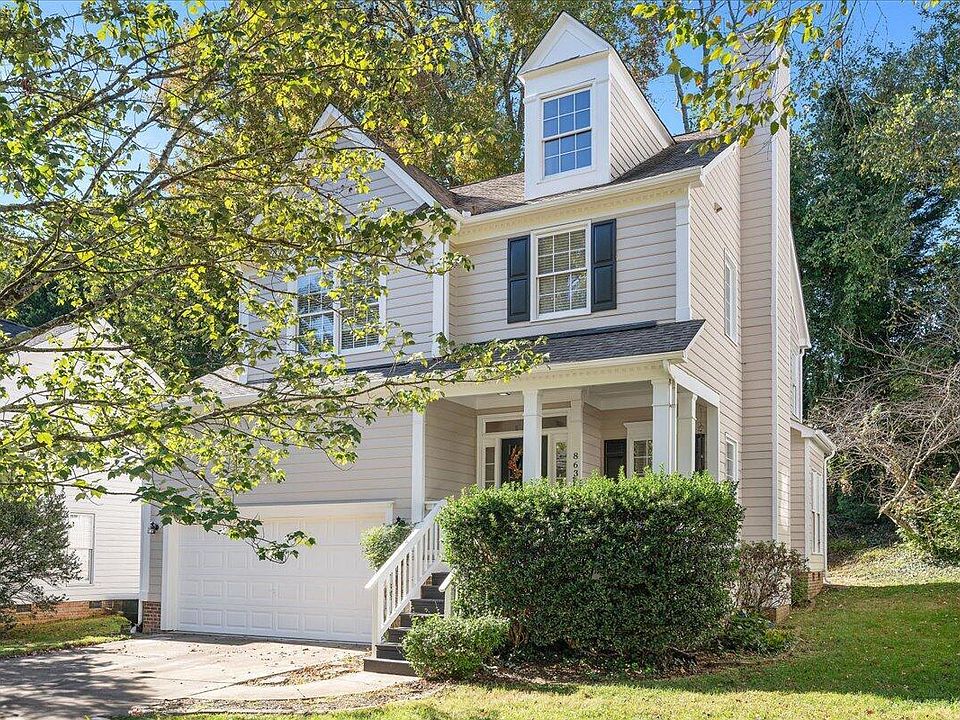 This lovely home in a convenient North Raleigh location is perfect for an owner-occupant or an investor seeking a move-in-ready property. Featuring fresh interior and exterior paint, newer carpet upstairs, and brand-new luxury vinyl plank flooring throughout the main level, this home shines from top to bottom. Step inside from the spacious front porch to a bright, open living area with a cozy fireplace and plenty of natural light. The kitchen offers stainless steel appliances and room for casual dining. Upstairs, the spacious primary suite includes a vaulted ceiling and walk-in closet. The primary bath has double sinks and an oversized tub/shower combo. There are two additional bedrooms and a full bath just down the hall. Outside, enjoy a back deck overlooking a private, tree-lined yard—ideal for relaxing or entertaining. The property also includes a two-car garage and no homeowners association, giving you flexibility and freedom without extra fees. Located near excellent shopping and dining options along Falls of Neuse Road and Strickland Road, you'll have quick access to I-540 and all that North Raleigh has to offer. Whether you're looking for your next home or a great investment, 8632 Swarthmore Drive delivers comfort, convenience, and value in one attractive package.