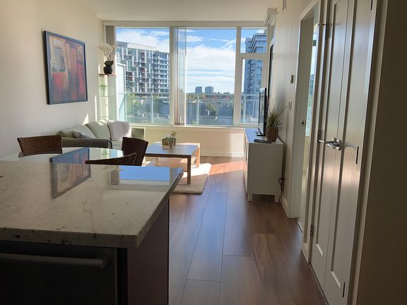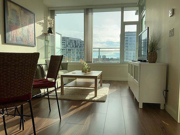 MOVING or new to BC? Looking for an affordable FULLY FURNISHED, AIR-CONDITIONED move-in ready newer condo without having to commit to a long-term lease? Accepting guests on a month-to-month basis. This is a one-bedroom condo within a newer high-rise complex with great amenities. There are absolutely NO added move-in/move-out fees (because the condo is fully furnished). NO cleaning fees, insurance or application fees. PLEASE READ THE ENTIRE AD BEFORE YOU MESSAGE ME Note: Currently occupied to December 31. ELECTRICITY CHARGES & HI-SPEED INTERNET SERVICE WILL BE INCLUDED FOR ONLY AN ADDITIONAL $100/month for a single occupant ($110/mo for a couple) with no set up charges. The posted monthly price includes the use of our building's great amenities which consists of a rooftop pool with whirlpool, steam room, sauna, fitness/weight room, full-size skylit indoor 2-court badminton/basketball gymnasium, yoga, and theatre rooms, activities areas with free billiards/table tennis, resident's lounge, large social area with party facilities, nearly 300 metres of outdoor rooftop walkways, free secured underground parking for one vehicle, secured bike storage area, kids outdoor play area, free use of the rooftop common area bbq, etc. Capstan Village area close to YVR (newer high-rise CONCRETE tower complex). Fully furnished and equipped. The prospective guest must meet very strict criteria to be considered including verifiable references and/or a good standing as an Airbnb guest. For individuals already in the Vancouver area the condo can be viewed by appointment, 24 hours in advance. Out-of-town guests with pre-arranged studies or local employment (references) will be considered and third-party viewing is acceptable. Beautiful near new concrete high-rise condo, south-facing suite, City/River views, generous full-width 140sf covered balcony, AIR CONDITIONED, 9' ceilings, master bedroom with walk-through closet, in-suite laundry. Building has secure fob-controlled elevator access to each floor. Very bright south-facing suite with gourmet kitchen with gas cooktop, full-size self-cleaning wall oven, garburator, bottom-freezer fridge with water/ice dispensers, quartz counters, breakfast bar. Indoor and outdoor dining tables. Fabulous location next to the brand new Capstan Skytrain Station and the next stop is the Richmond transit hub (Bridgeport Station with direct bus (23 minutes) to UBC). The famous Richmond Night Market, countless eastern cuisine restaurants, River Rock Casino, shopping and services are all a short walk away. There is a large open-air shopping mall right across the street (Union Square) with numerous restaurants, bakeries, etc., so you may never want to cook at home! Just 3 to 5 minutes to Hwy 99, the Oak Street Bridge (City of Vancouver), or YVR if you have a car. (Secure underground parking space and bike storage area included). Part of the exciting Capstan Village development in the Arts/Entertainment District of Richmond. For those new to the area, Richmond is the undisputed eastern cuisine capital of North America with hundreds of restaurants concentrated within a relatively small commercial core. Please provide the following information if you would like to view the condo: 1. Names, genders/ages of proposed occupants 2. Confirm that you are looking for January 1st and no earlier 3. Anticipated length of stay 4. Confirm that you do not have any pets 5. Current location Month-to-month or 6-mo terms