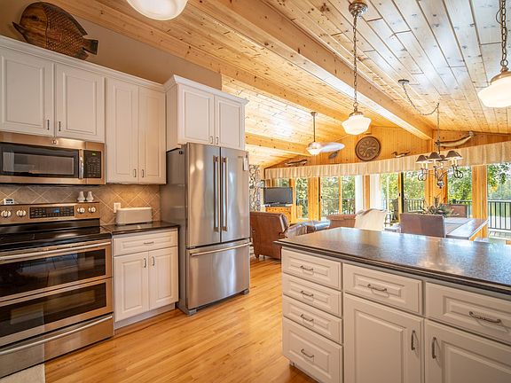 Enjoy lake life on the Whitefish Chain at this well-appointed 3-bedroom 2 bath Clamshell Lake home which boasts 100 ft of hard sand frontage, gradual elevation, and quality landscaped grounds. Main floor features an open floor plan, hardwood floors, vaulted knotty pine ceiling, floor to ceiling stone fireplace, and a lakeside 4 season porch with access to the deck. Finished walkout lower level features an oversized primary bedroom and a family room for watching movies or playing games on a rainy day. Quality 2 plus detached garage offers storage. Take in spectacular lake views from either inside or outside of the home, sit back and relax on the wrap around lakeside deck which has premier iron wood decking, gather around the lakeside fire pit area under the stars or play tennis at the minimal Clamshell Cove association tennis court that is at the end of the driveway! Come see this beautifully cared for home on prestigious Ruttger Road before it is gone- ones like this don't last long!
