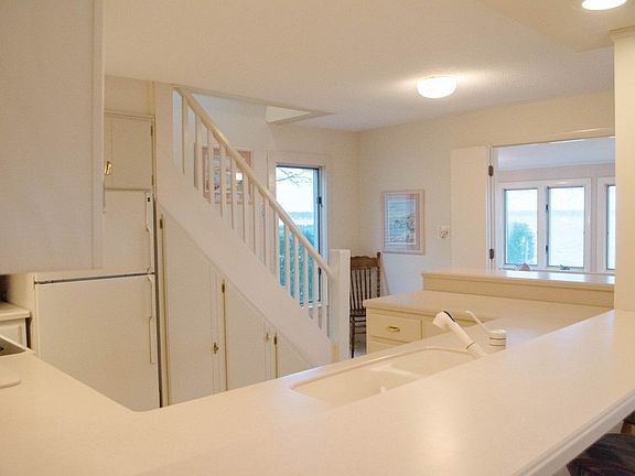 Among tall trees, and down a quiet winding road, is a perfect lake home for you and your family. With 60 feet of lake frontage and almost 60 feet of channel frontage, this home offers multiple views of the waters of Lake Wawasee. Lake Wawasee is Indiana's largest natural lake with over 3500 acres of water and 25 miles of shoreline. The lake life here can be both peaceful and full of opportunities for fun. All year round the changing vegetation and wildlife, and the magnificent sunrises and sunsets over the water, will remind you over and over again how life on the lake is truly a unique experience and worthwhile investment. This particular home includes a wonderful patio with magnificent sunset views, a deck in back, and a channel boat-lift and shed, perfect for storing all of your water toys or fishing gear. Inside, as you walk in the front door, you will be drawn forward to the row of windows along the lake side of the home that showcase the wonderful view of the water. The main living area is very open, which allows for conversations with friends and family to flow throughout the kitchen, living room and sun room, as well as offering views of the water from every location. In the sun room, you can enjoy the expansive view of the lake, both in the summer as you watch the sailboats on Sundays cruise by, or in the winter as the lake glistens in the sunlight. Upstairs you will find plenty of natural light and two bedrooms, both with ample space for yourself and guests. The master bedroom also boasts another wonderful view of Lake Wawasee; the perfect scene to wake up to each morning. The furnishings are included in this unique home, ready to enjoy this summer, or even for a permanent residence year-round. Life on Lake Wawasee awaits you!